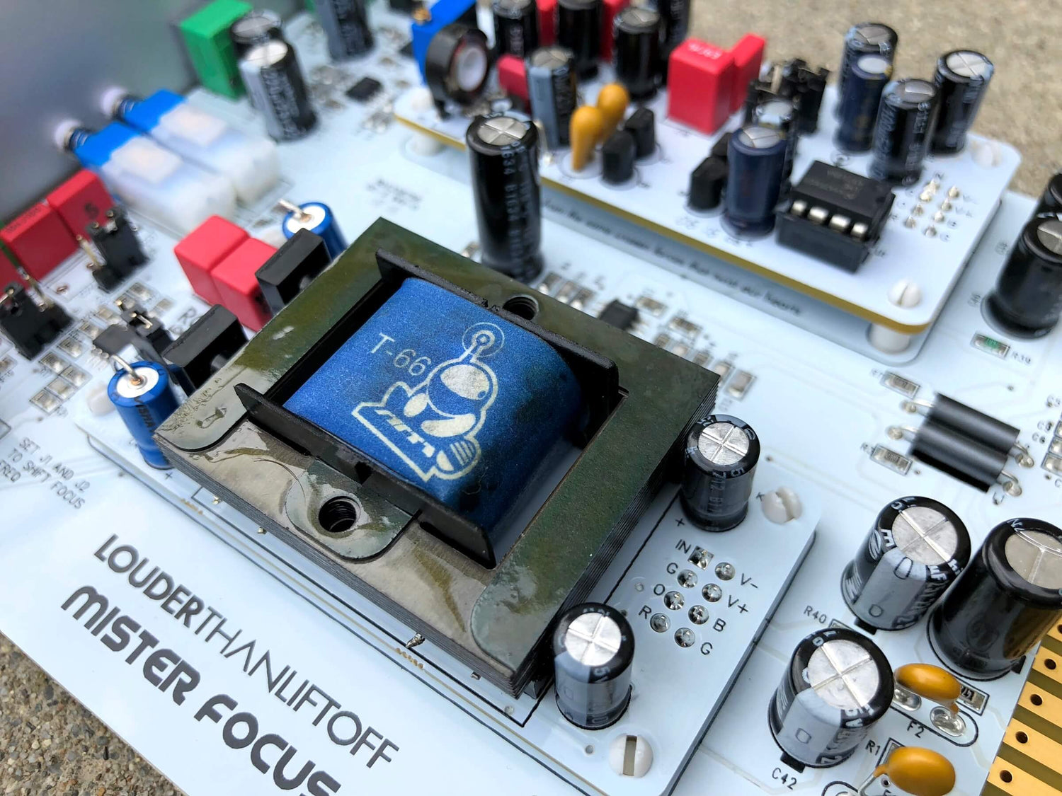 Wir haben jede Komponente in Mister Focus nach Gehör ausgewählt, um maximale Wirkung und klangliche Synergie mit dem Rest der Schaltung zu erzielen. Unser sorgfältiger Entwicklungsprozess umfasste sowohl empirische Messungen als auch reale Studioanwendungen zur Validierung des Designs. Wir nutzten auch unsere Erfahrungen aus Design und Bau von Chop Shop und Chroma. Dieses Design enthält High-End-Teile von Nichicon, Panasonic, Vishay, Susumu, Wima, TI und Analog Devices. Alle Audiopfadwiderstände sind 0,5 % oder 0,1 % Dünnschichttypen für geringe Verzerrung und Rauschen. Wo zutreffend, verfügt Mister Focus über speziell angefertigte amerikanische Wickeltransformatoren und in einigen Modulen über unseren eigenen diskreten Operationsverstärker. Andere Komponenten wie Schalter, Knöpfe und Frontplatten stammen von amerikanischen Lieferanten. Unsere Leiterplatten bestehen aus Hochtemperaturmaterial Tg 170 für langfristige Zuverlässigkeit. Die gesamte Baugruppe ist RoHS-konform (bleifrei). Die gesamte Montage und Prüfung wird hier im Silicon Valley durchgeführt.