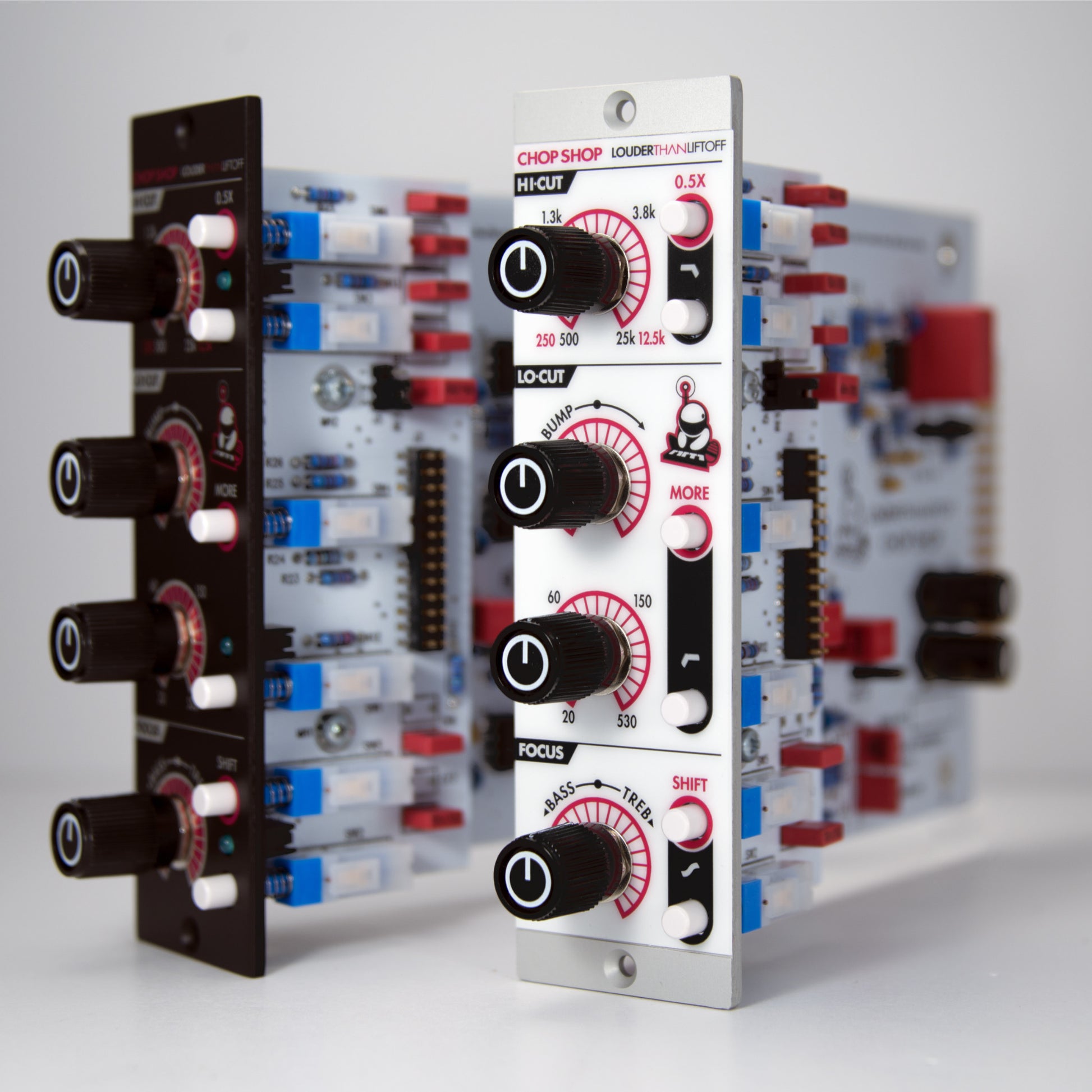 Louder Than Liftoff is proud to present the Chop Shop 500 Series EQ available with a silver or black aesthetic (limited Void Corp Edition). Offering a unique and intuitive set of features for quickly shaping tones with minimal fuss, the Chop Shop empowers you to achieve focus and separation in your mix. It's almost like cheating.
